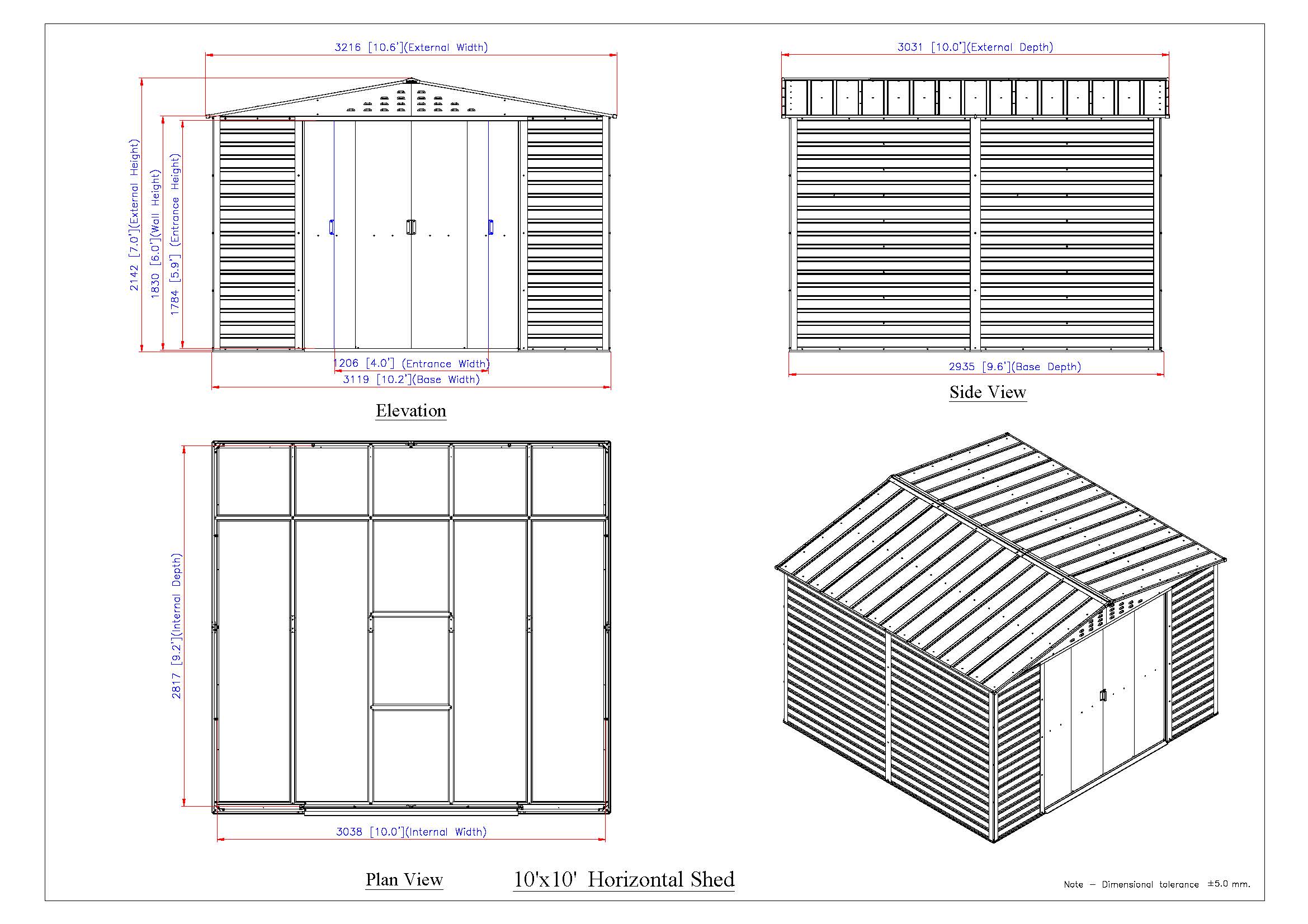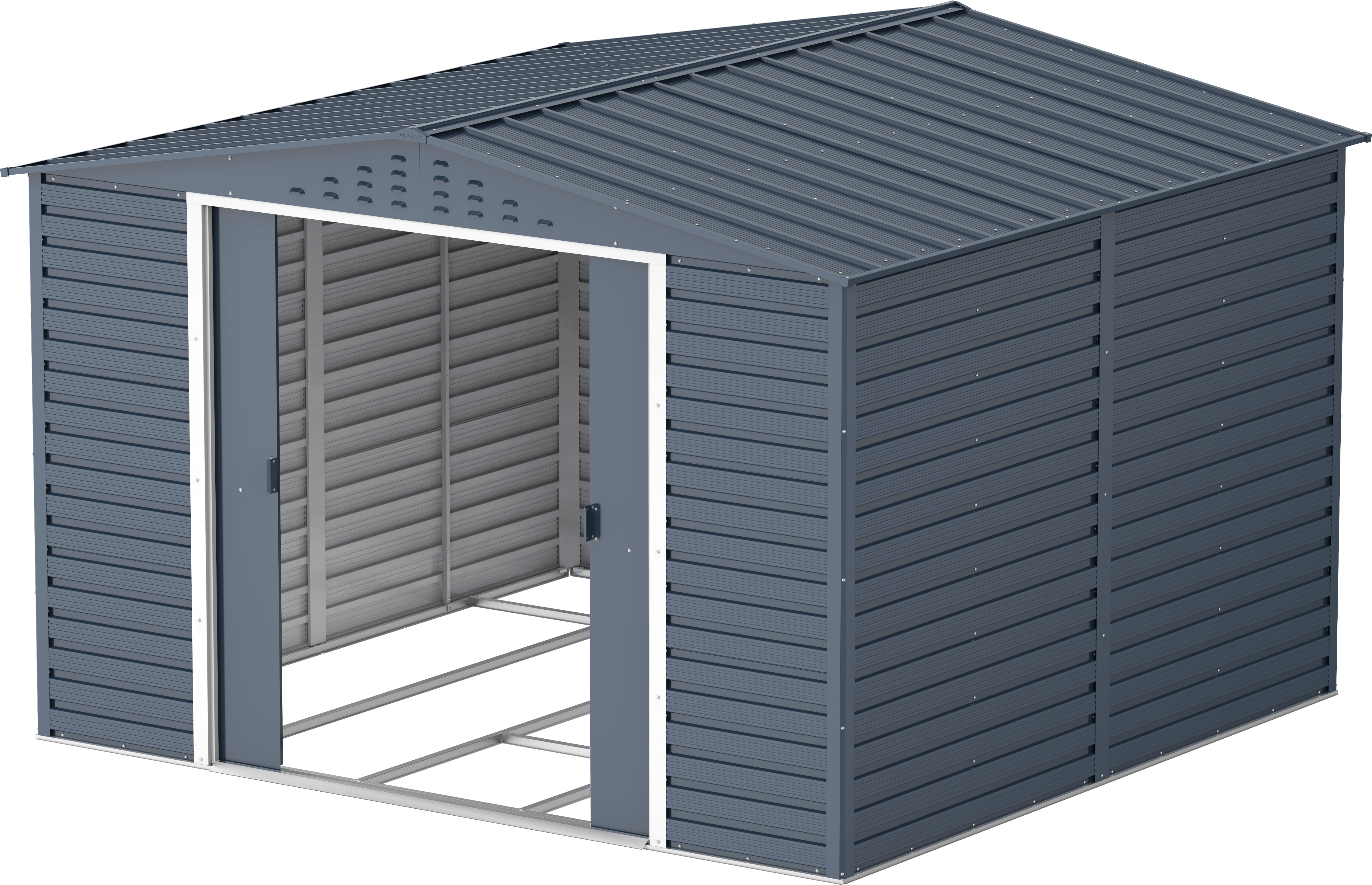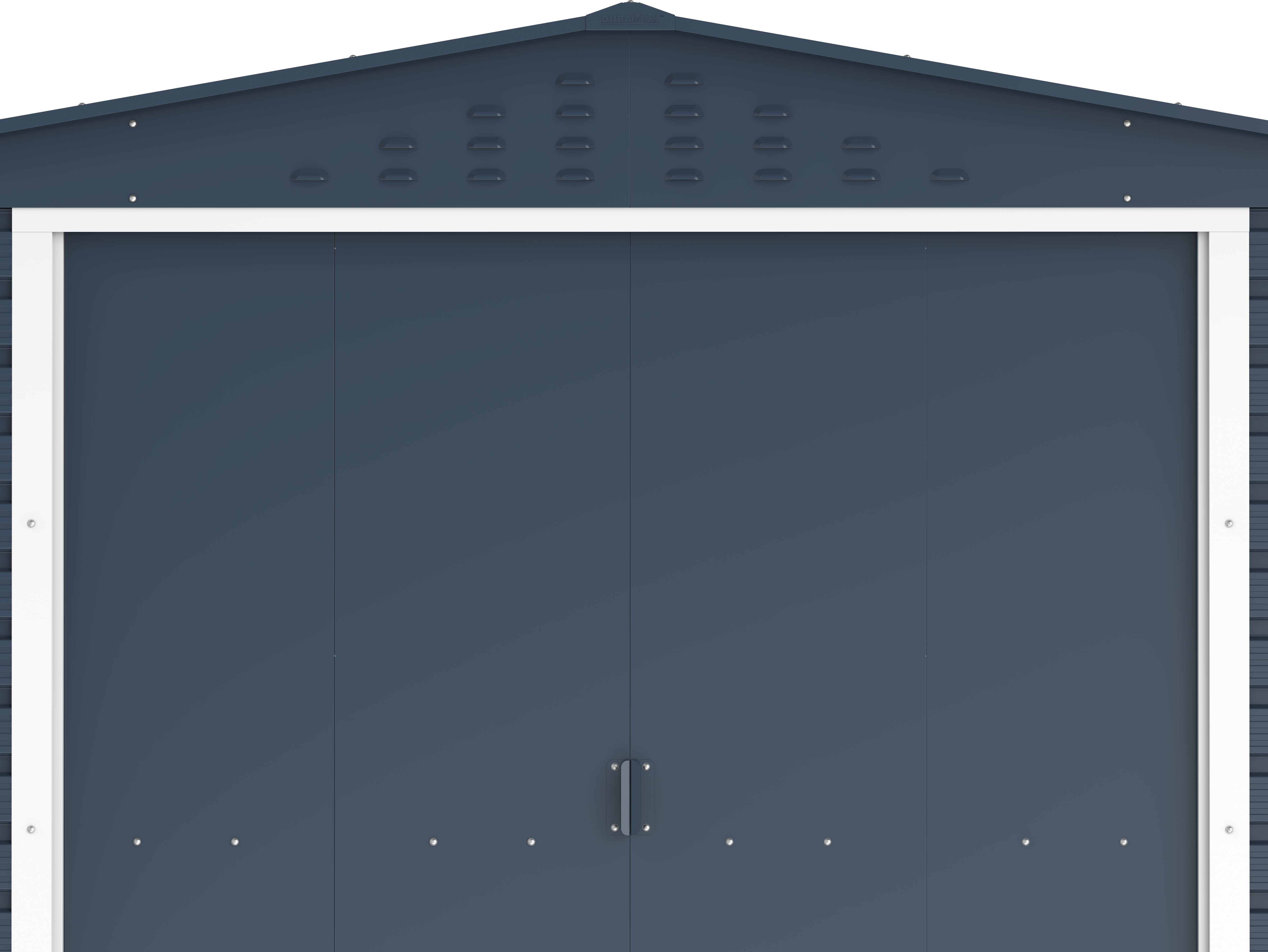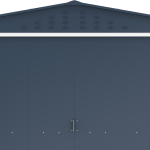 The Alpine Sheds are made of pre-painted hot dipped galvanized steel which provides superior resistance to corrosion and utilize thicker steel. The central double sliding doors have a redesigned sliding system that provides ample access as well as a secure way of locking. The roof incorporates strong support beams and a wall columns stability and strength. The Alpine sheds also features strong metal roof truss and structure for added durability and during the winter the roof can handle 20 lbs per square foot of snow. These sheds also have a Canopy extension kit which is mountable either on the left or right side of the Alpine sheds and makes it easy to store woods, bicycles, deck boxes and many more.