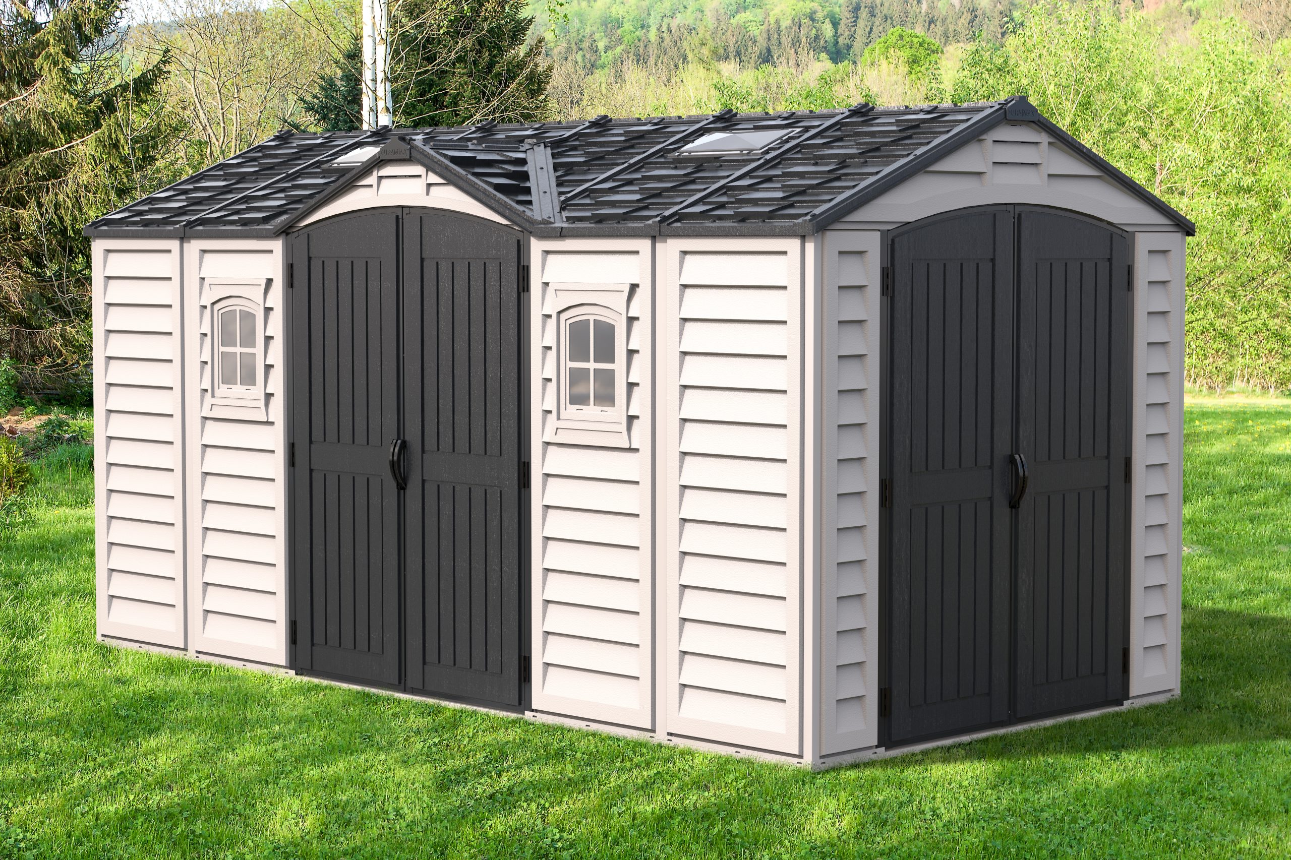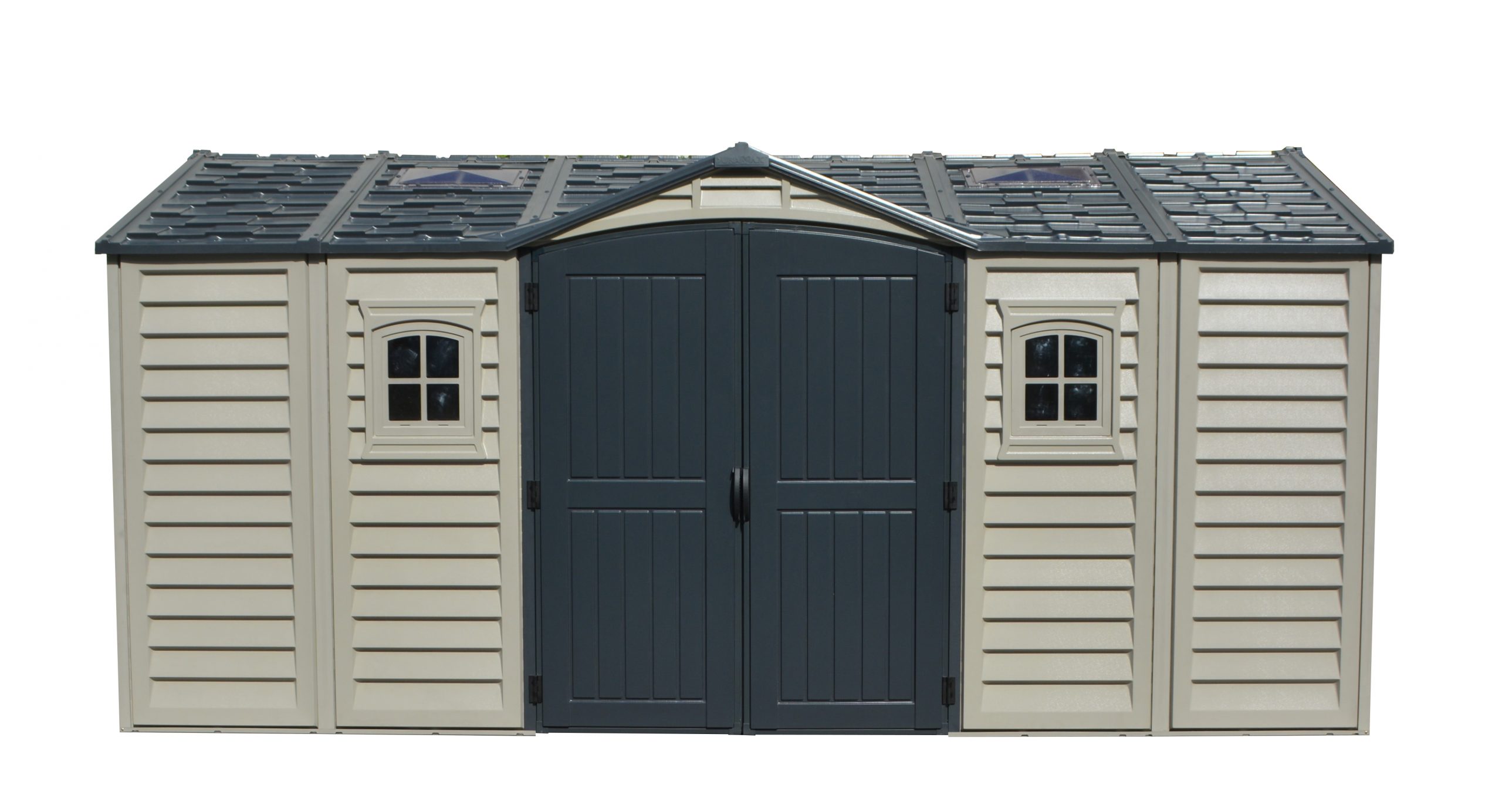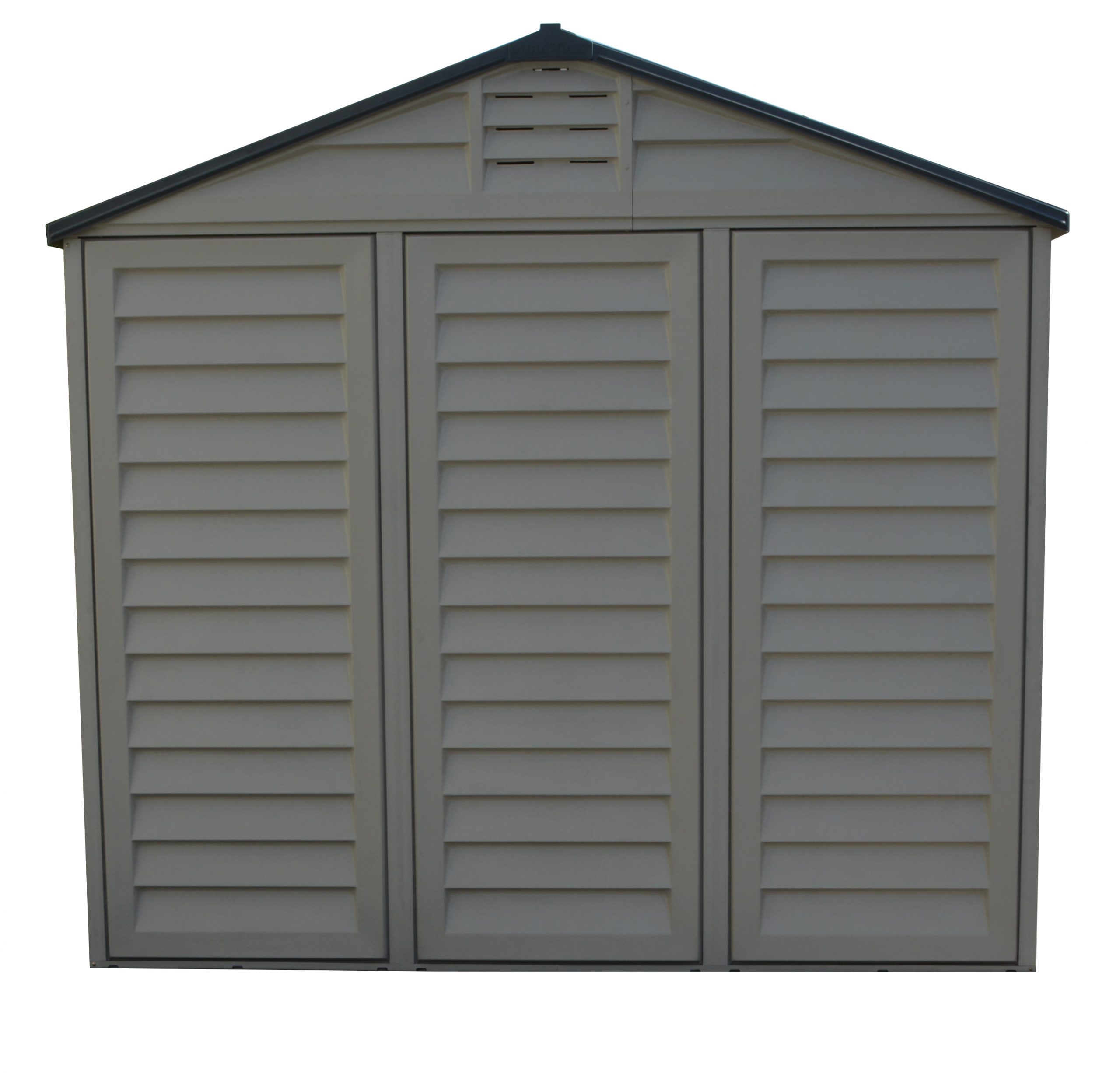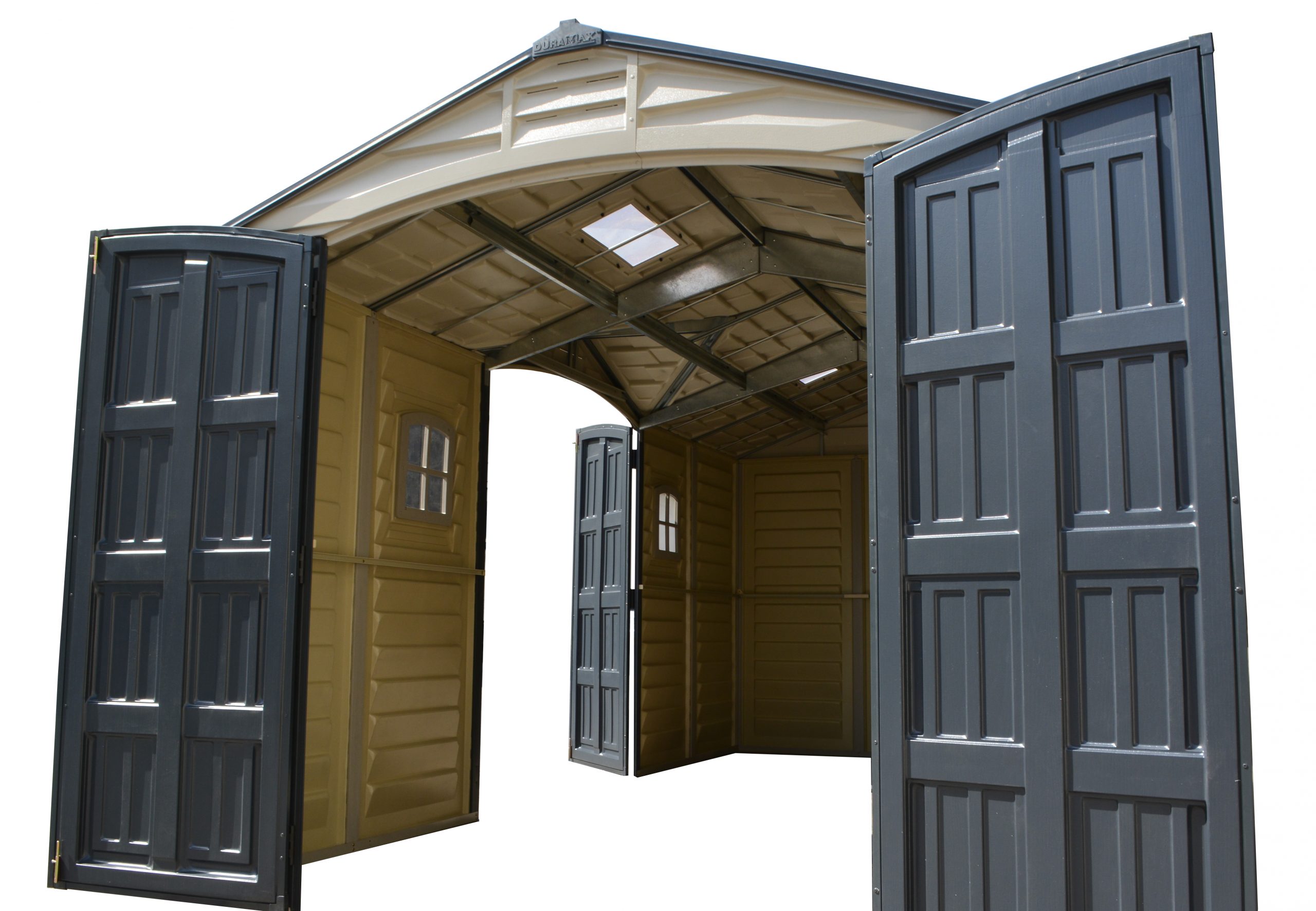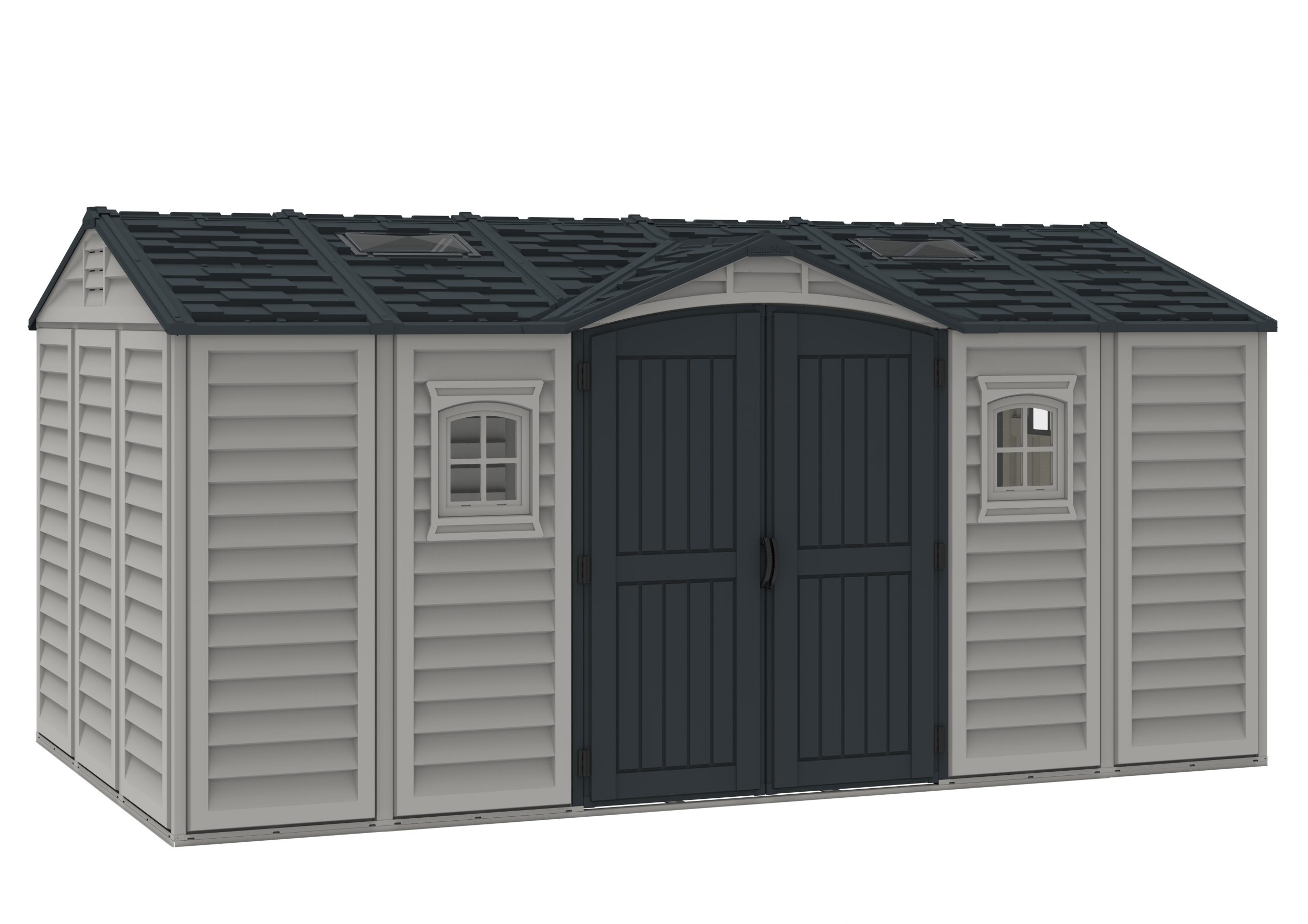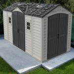 The Apex Pro is the latest line of quality sheds produced under the Duramax brand. The brand Duramax to signify DURability and MAXimum quality and value. The Apex Pro has large double entry and double side doors.This provides storage accessibility from either side of the shed, insuring maximum utilization of storage and is easier to acquire the stored equipment. The Apex Pro was attractively designed to add beauty and blend into any yard area. The Apex Pro is maintenance free. It never needs painting and won't rust, rot or dent and is impervious to wood eating insects. This shed has two creatively designed skylights on the roof and two front windows for light control and has four slotted vents for air flow.The Apex Pro has more of the physical characteristics of a house than a shed. The fire retardant vinyl resin panels are supported by Heavy Duty interior galvanized steel columns, beams and trusses for strength and roof snow load. Vinyl unlike polyethylene is fire retardant and safe to store all your flammable items. The 15 years warranty supports our guarantee of quality and longevity. It has a step by step instruction manual to simplify assembly. We suggest two people to facilitate assembly.