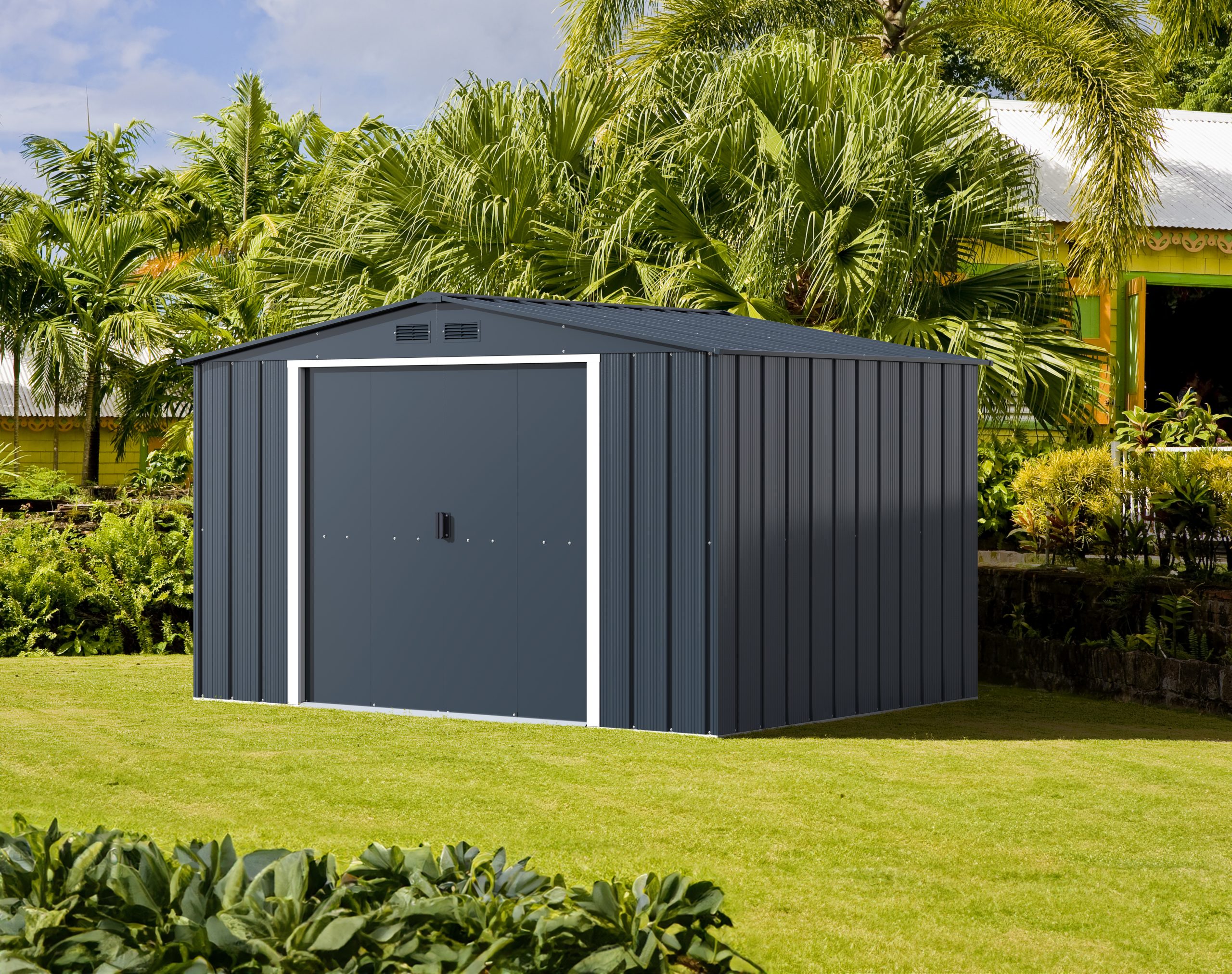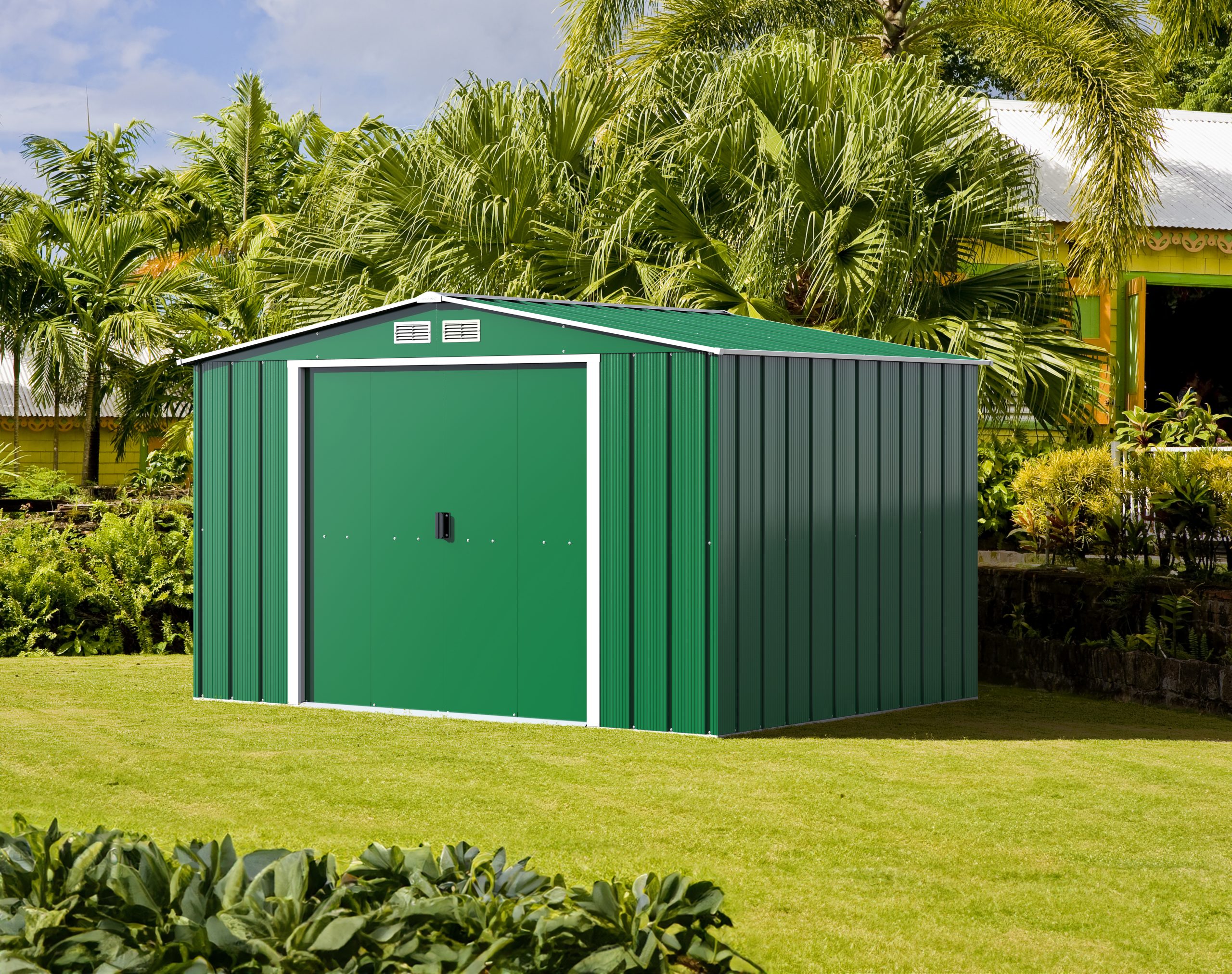 These metal sheds come in different size configurations to accomodate additional needed storage space of any home.
